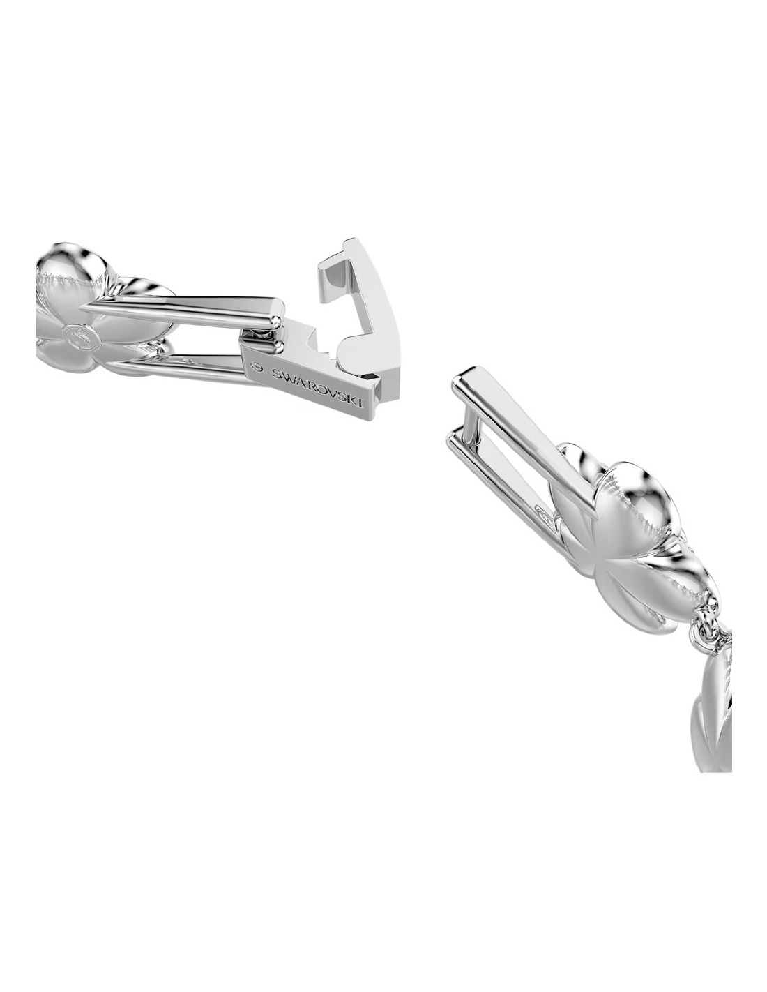 Questo bracciale richiama una serie continua di piccoli fiori, ciascuno con un cristallo centrale e petali rifiniti in pavé di cristalli trasparenti. Realizzato in lega di metalli anallergica con una placcatura in rodio che conferisce una brillante finitura argentata.