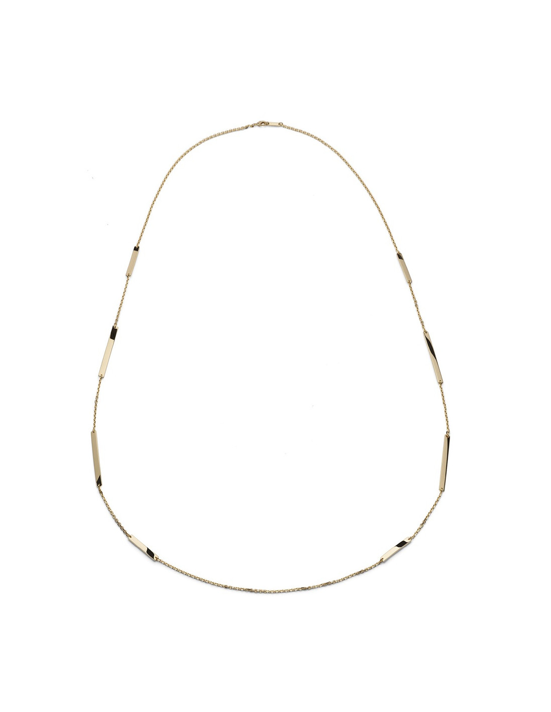 ollana chanel in catena sottile dorata con lastrine rettangolari piatte alternate. Chiusura a moschettone, misura 123,00 cm.